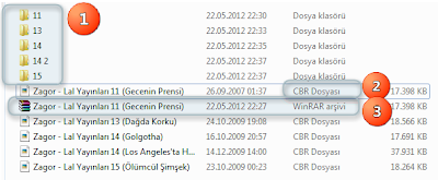 Resimde (2) No ile belirtilen CBR uzantılı dosyamızın winrardan çıkmış görüntüsüdür.