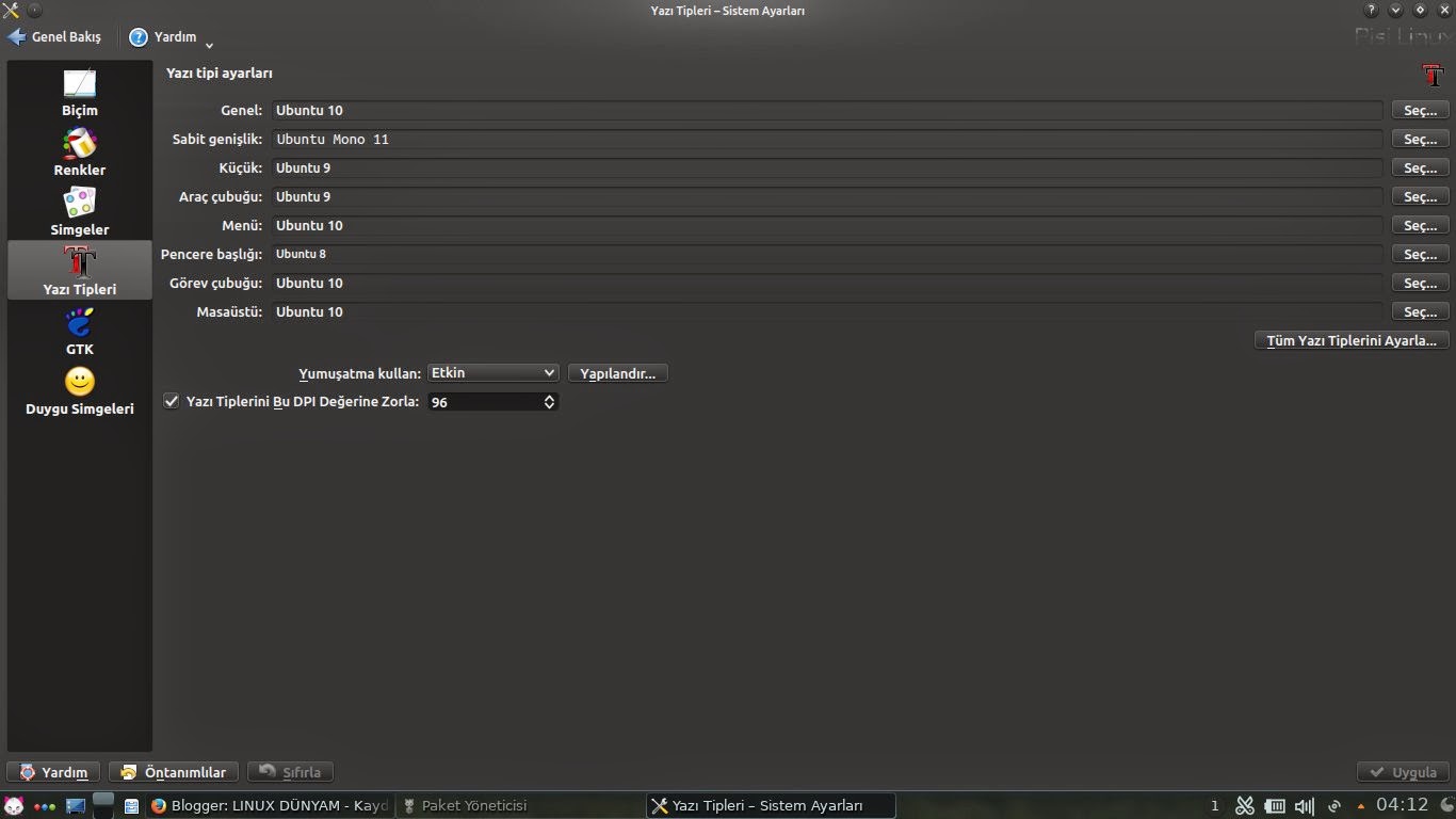 10- Sistem fontunu Ubuntu yap. Yumuşatma Etkin. Altpiksel RGB, Gölgeleme zayıf.