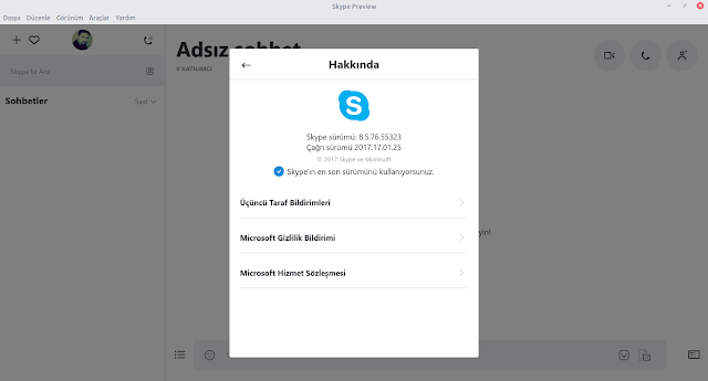 Not: Microsoftun Linux için de bir şeyler yapması iyi güzel ama sizce de bazı şeyler için biraz geç kalınmadı mı? Bir süre öncesine kadar doğru düzgün güncelleme bile gelmiyordu. Microsoft, Skypeı yaşatmak için canla başla çırpınıyor gibi görünüyor. Yeniden tasarlanmış bu halinden bahsetmek dahi istemiyorum. Bu arada tema özelliği de eklenmiş. Çok büyük(!) eksiklikti.